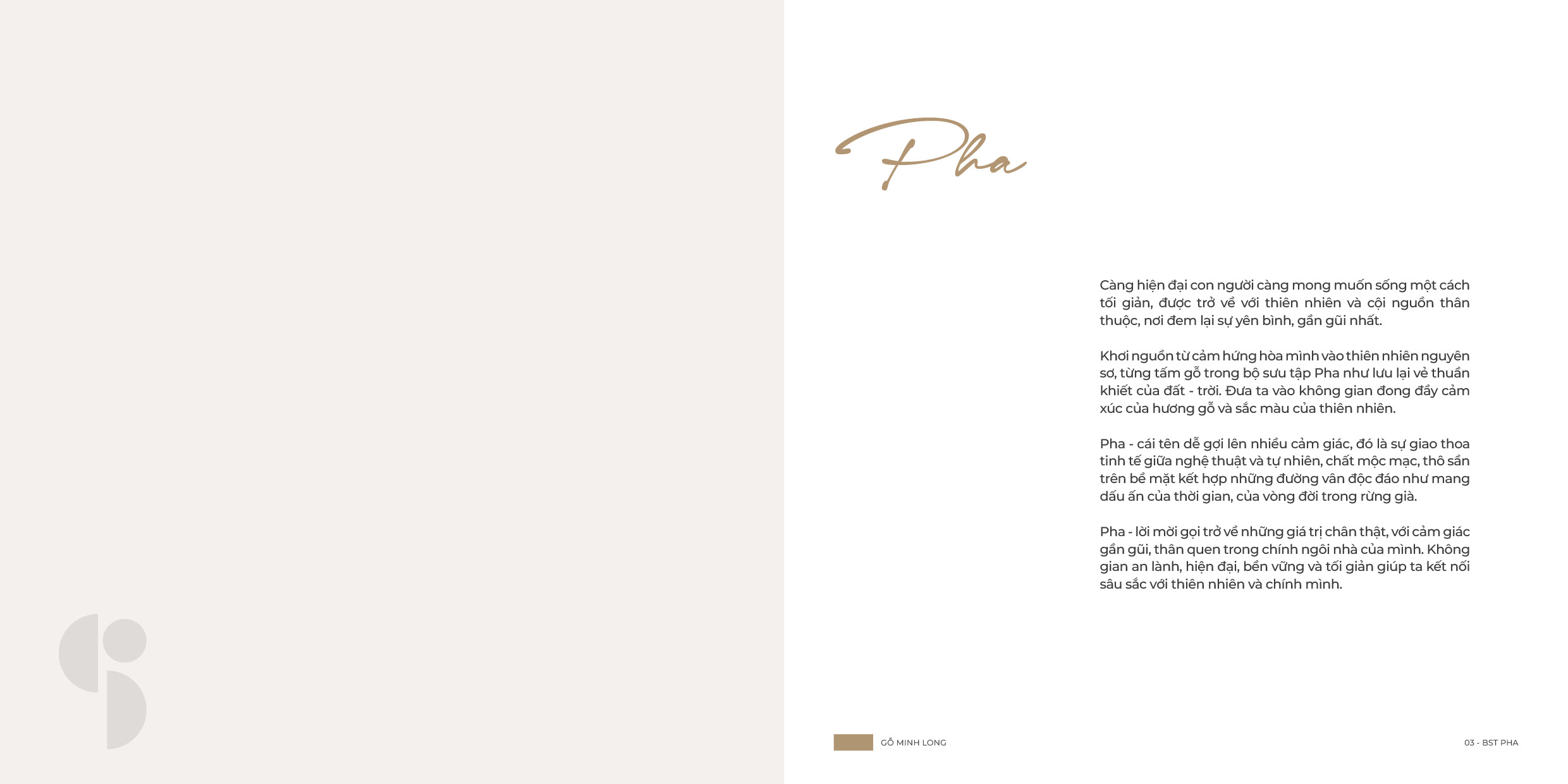 Pha ra đời như một phản hồi tự nhiên cho nhu cầu đó, đây là một bộ sưu tập được kiến tạo để tạo nên những không gian lành, gần gũi với thiên nhiên nơi con người được hít thở sâu, tĩnh tại và trở về với chính mình.