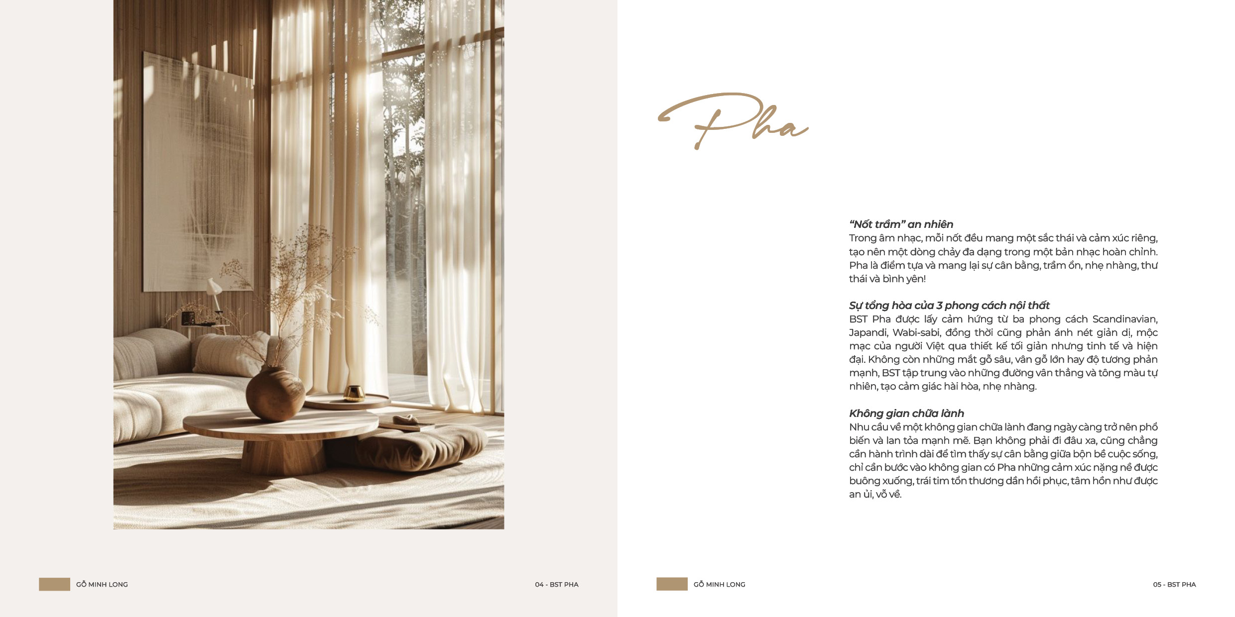 Lấy cảm hứng từ sự hòa quyện giữa tinh thần Bắc Âu thanh thoát, sự trầm tĩnh của Nhật Bản và chiều sâu bản sắc Việt, Pha là biểu đạt của một “làn da thứ ba” chở che cảm xúc và khơi gợi sự kết nối tinh tế giữa con người với không gian sống. Không đơn giản chỉ là xu hướng thẩm mỹ mà đây còn là lựa chọn phù hợp với thời đại hiện nay.